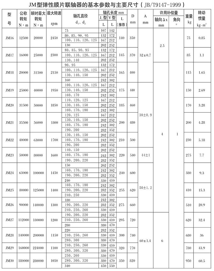 JM、JMJ型彈性膜片聯(lián)軸器